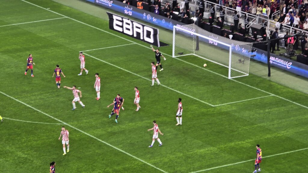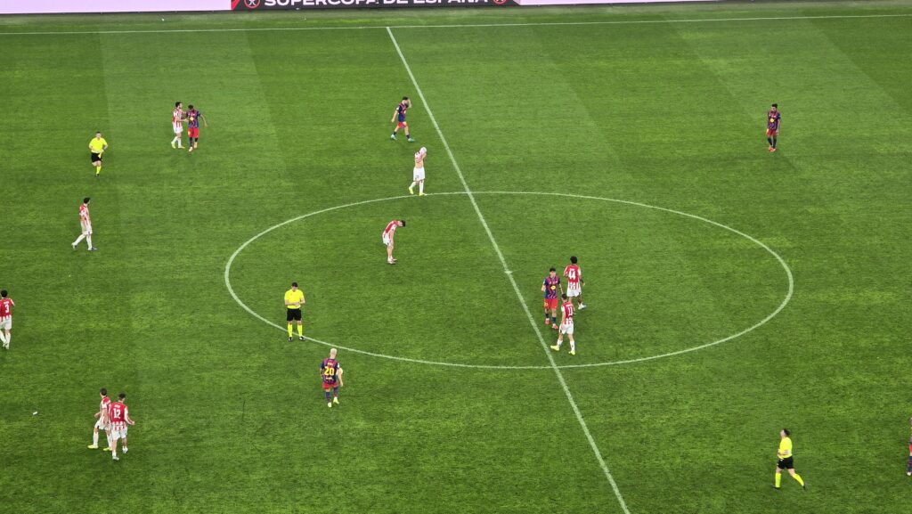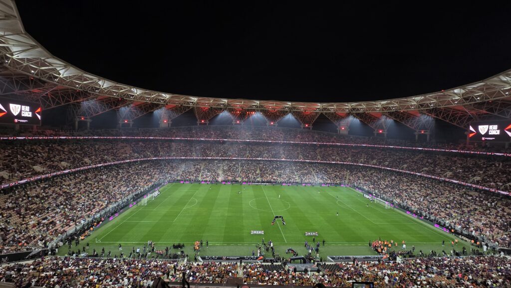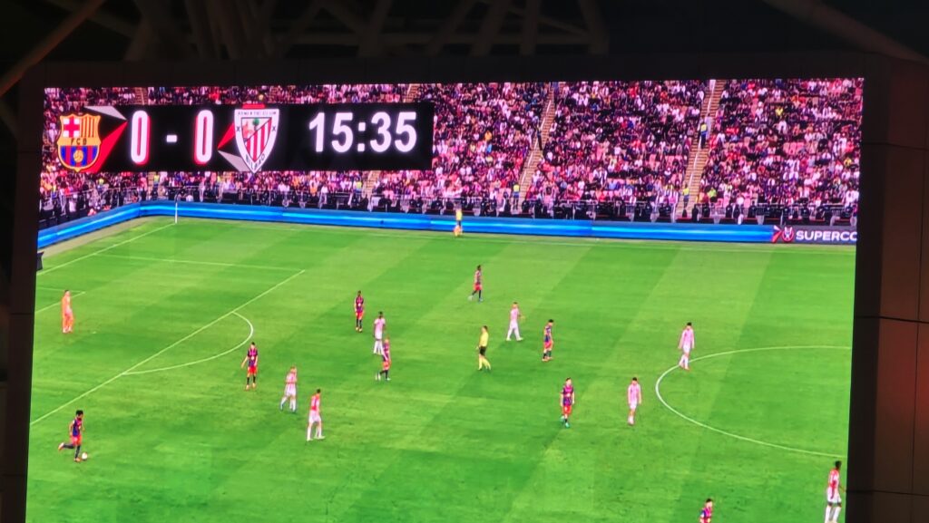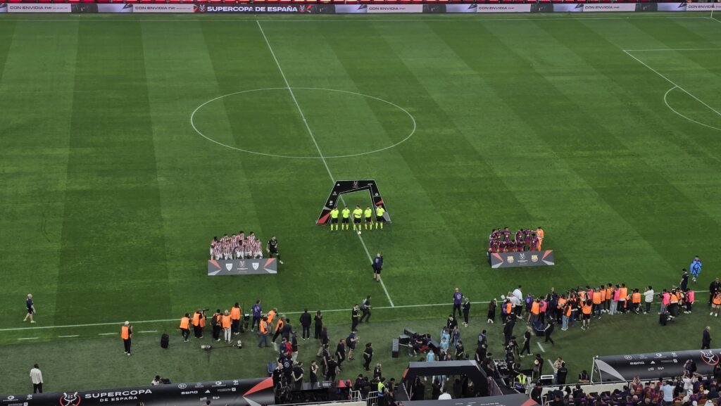 تغطية مباشرة لأحداث مباراة نصف النهائي بين برشلونة وأتلتيكو بلباو على ملعب الإنماء في جدة.