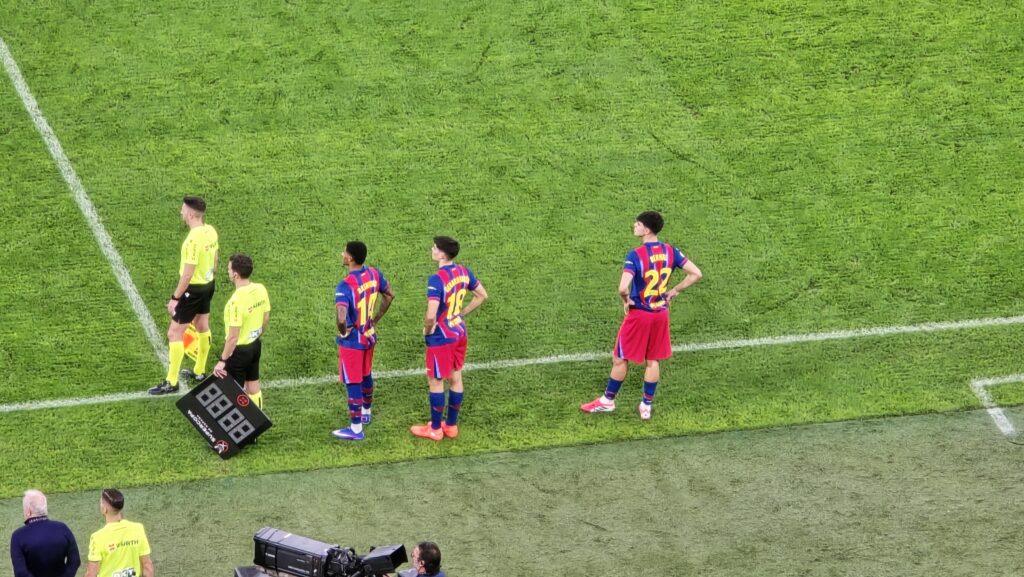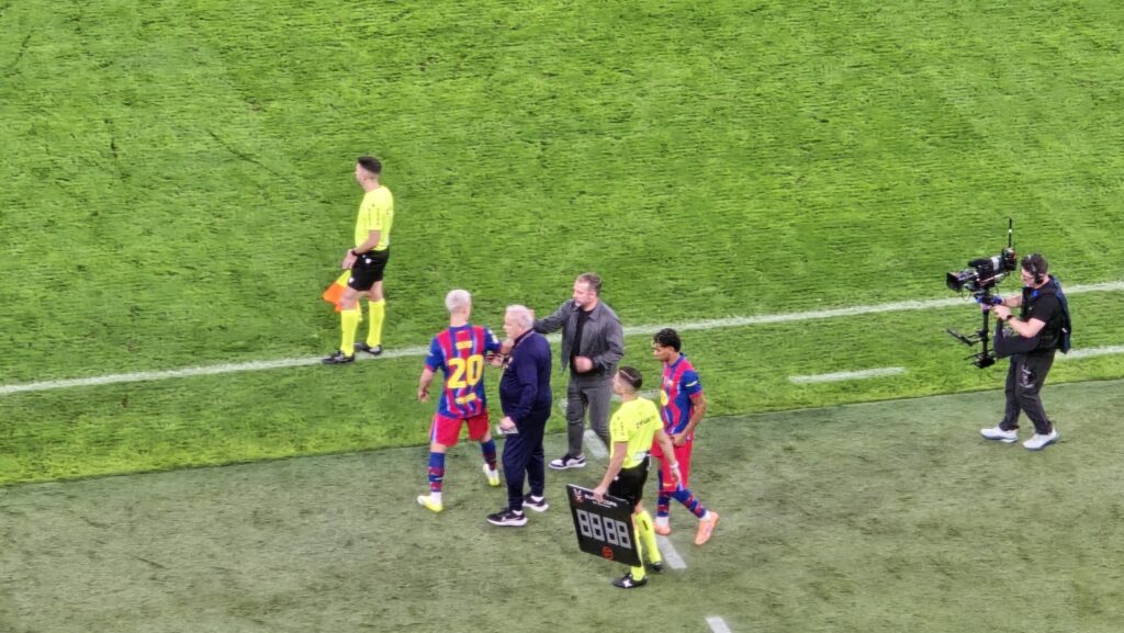 يُشرك هانز فليك لامين جمال بدلًا من روني، وداني أولمو بدلًا من بيدري وسط تحية كبيرة من الجمهور.