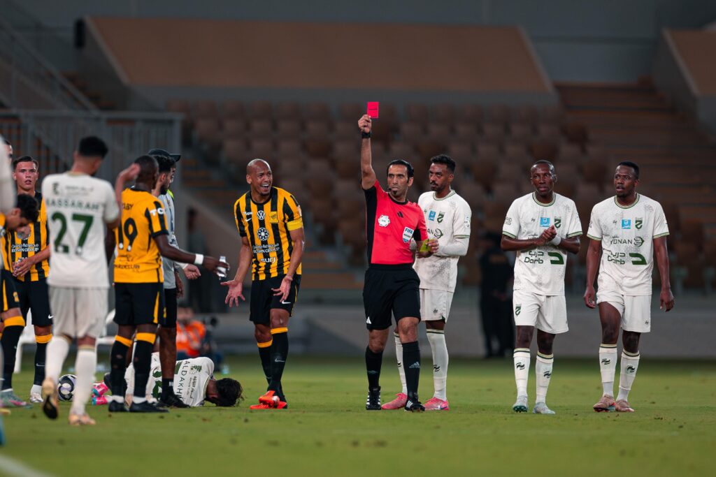 شهدت المباراة بطاقة حمراء للاعب الفرنسي موسى ديابي في الدقيقة 34 من عمر المباراة بعد ضرب لاعب الحزم بدون كرة ليقرر الحكم شكري الحنفوش إشهار البطاقة الحمراء حيث من المحتمل أن يتعرض لعقوبة إضافية.