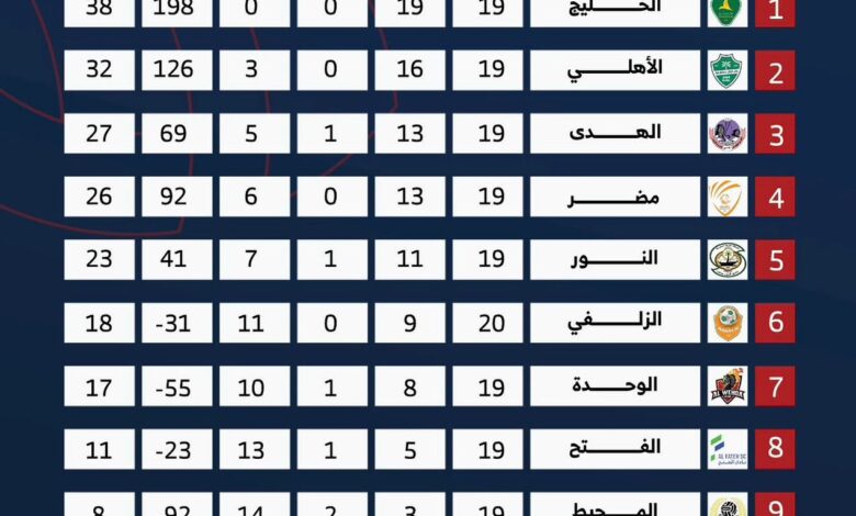 ما قبل الختام بجولة، الخليج يتجاوز النور بفارق 10 أهداف، الهدى من أمام الزلفي يخطف نقطتي اللقاء، الوحدة يكسب الفتح بفارق 4 أهداف، وبفارق 19 هدفاً الأهلي يتغلب على المحيط.وبعد حلم تحقيق الذهب لمدينة صفوى، الصفا يتعثر أمام العدالة ويهبط رسمياً إلى دوري الدرجة الأولى. وبعد تعثر النور أمام الخليج، مضر يضمن المشاركة في نخبة كبار اليد بغض النظر عن نتيجة مباراته القادمة ضد الخليج.ختام بطولة الدوري الممتاز الأسبوع القادم سيشهد تتويج بطل الدوري نادي الخليج في مباراته أمام مضر، وفي بقية المواجهات الصفا يقابل الهدى، النور يستضيف الوحدة، العدالة يلتقي بالمحيط، والفتح يواجه الأهلي.