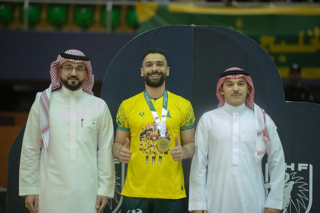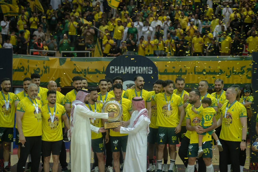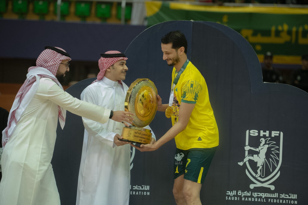 اختتم نادي الخليج مساء اليوم مشواره في الدوري الممتاز لكرة اليد بليلة تتويج تاريخية، مكرساً سيطرته على اللقب للمرة الثالثة عشرة في تاريخه والرابعة على التوالي، في موسم استثنائي أنهاه “الخليج” دون أي هزيمة.وشهدت جولة الختام تحقيق الخليج لفوزه العشرين في المسابقة، والذي جاء على حساب نادي مضر بفارق 8 أهداف، ليؤكد البطل جدارته أمام جماهيره في ليلة استلام الدرع.وفي جدة، تسلّم النادي الأهلي الميداليات الفضية لممتاز اليد بعد تفوقه على الفتح في لقائه الأخير بالمسابقة.أما في بقية مواجهات الجولة، فقد انتصر الهدى على الصفا، فيما خطف الوحدة نقطتي اللقاء أمام النور، وتجاوز المحيط منافسه العدالة بفارق 3 أهداف.هذا وتتجه الأنظار يوم الإثنين القادم إلى صالة مدينة الأمير نايف بالقطيف، التي تحتضن نهائي كأس الاتحاد في مواجهة مرتقبة تجمع الخليج بالنور.
